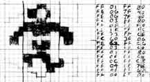 For computers to display graphics, the graphics need to be represented in a format that a computer can process, that is, as numbers. In this section we consider the easiest case, namely black and white images that are given in a raster of pixels and then converted into a sequence of numbers. For early computer games this process was done by hand as illustrated in Figure 12.1.
